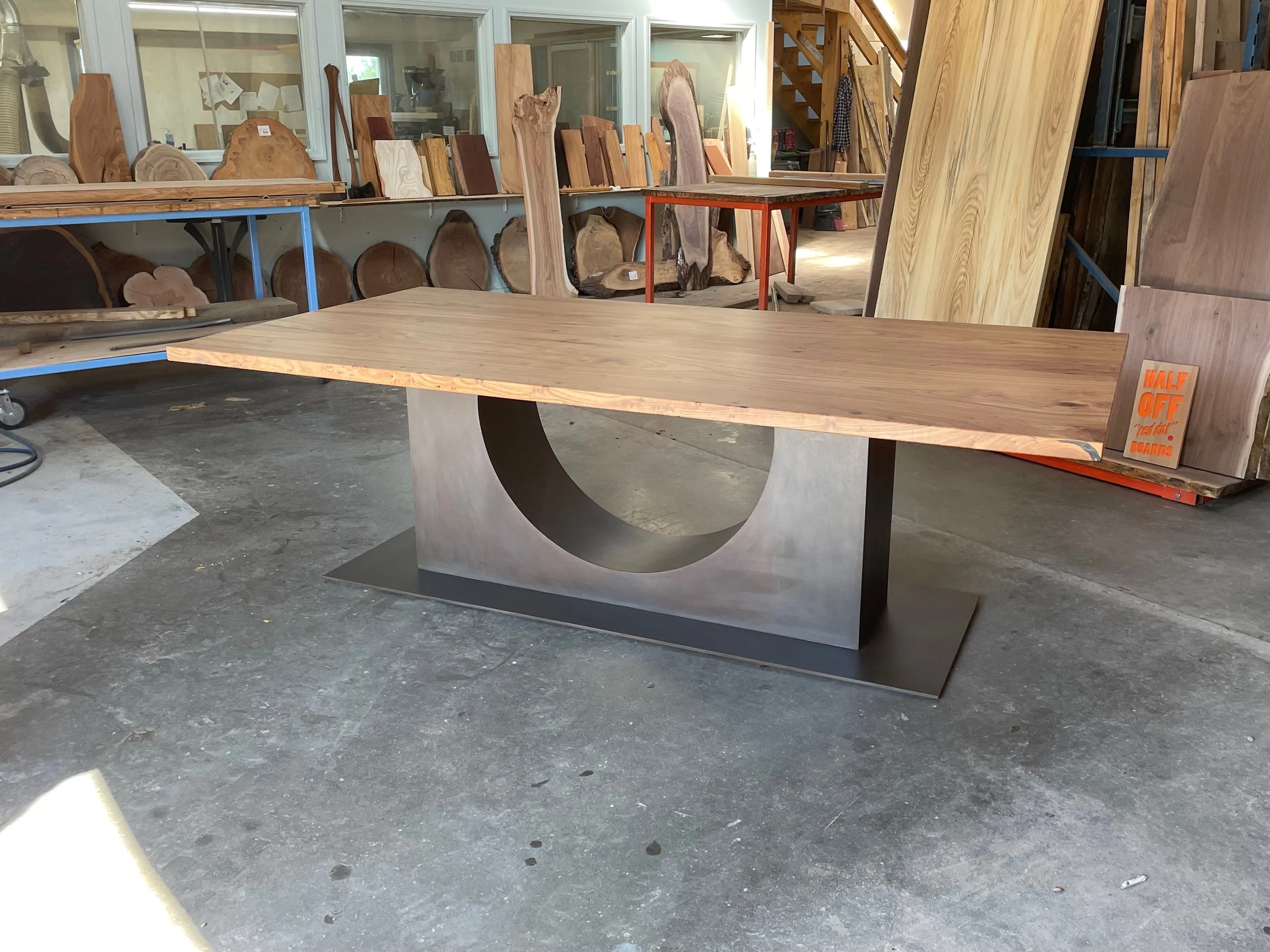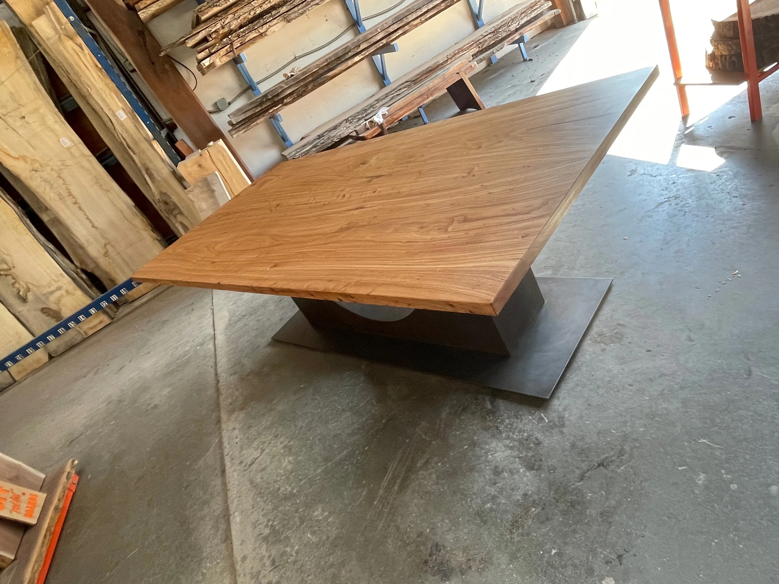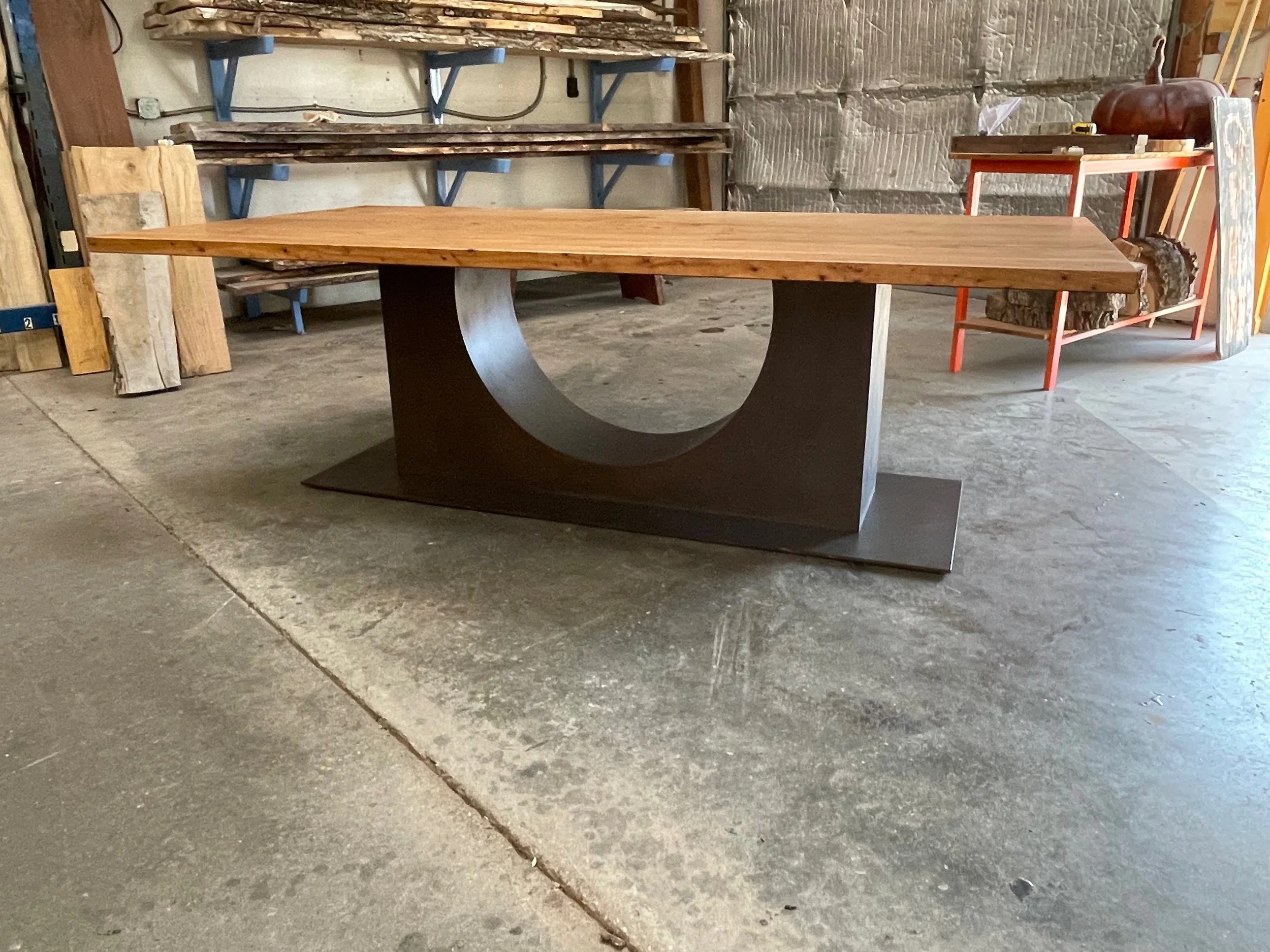A simple, beautiful elm top, with a custom patina’d steel base. Sent to a mountain home in Vail, CO.
